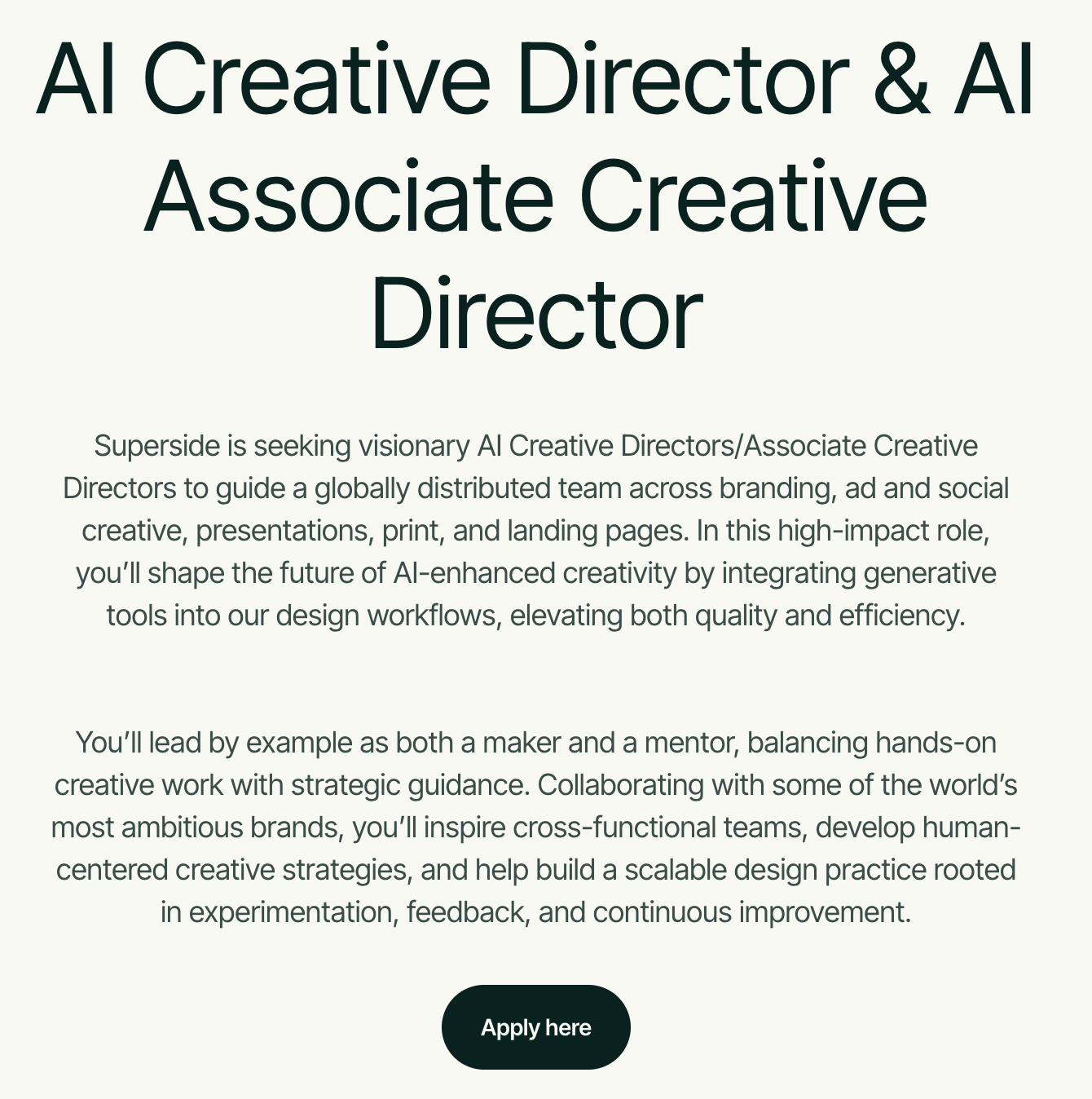 Superside,這家以「訂閱制創意服務」聞名的業界破壞者,其組織圖中已正式出現「AI 創意總監」[4, 5, 6]。這對整個創意社群來說,是一個極具指標性的風向標。