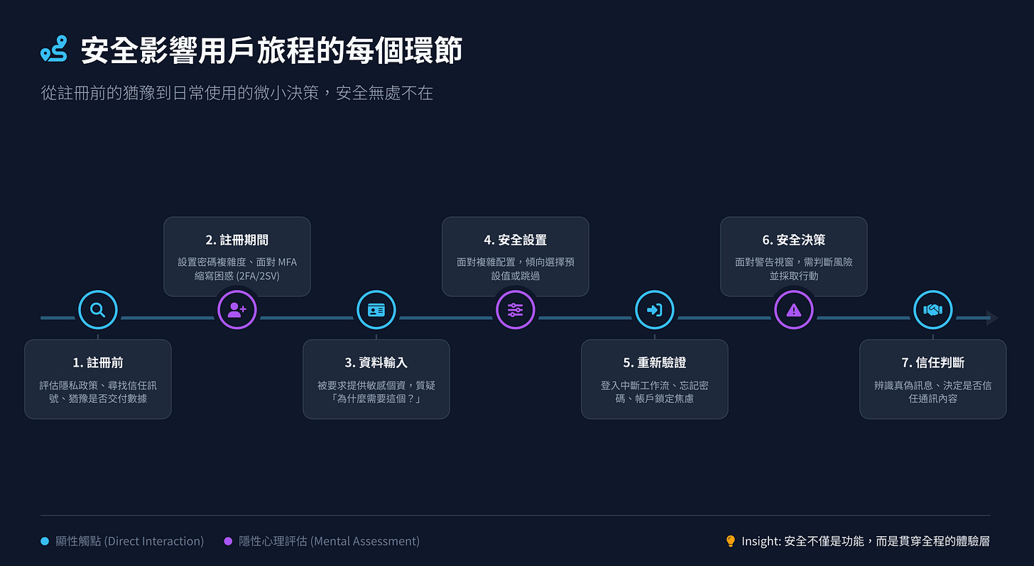 安全其實不是一個獨立模組,而是貫穿整條用戶旅程的體驗層。