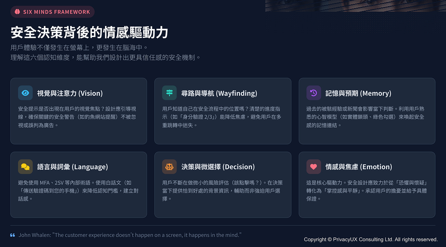 在你閱讀內文與搭配的投影片時,可以把它當成一張「地圖」:幫你標出安全在用戶旅程中的關鍵轉折點,和每個轉折點背後的心理機制。