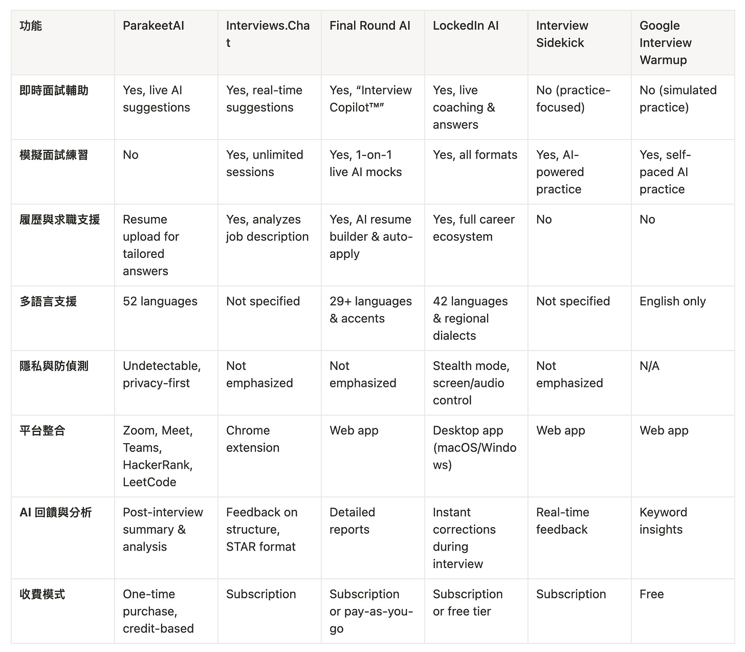 我們來放大看看兩個有承先啟後意義的玩家。LockedIn AI 的創辦人來自 Final Round AI 團隊,這讓它們的對比特別有意思。