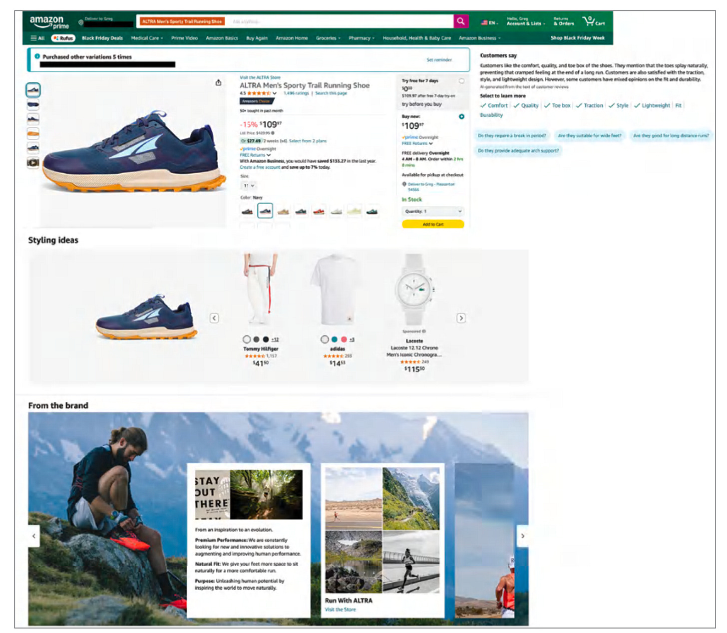 雖然 AI-優先的分析頁面可能看起來與目前的 Amazon 頁面非常相似,但有一些顯著的差異: