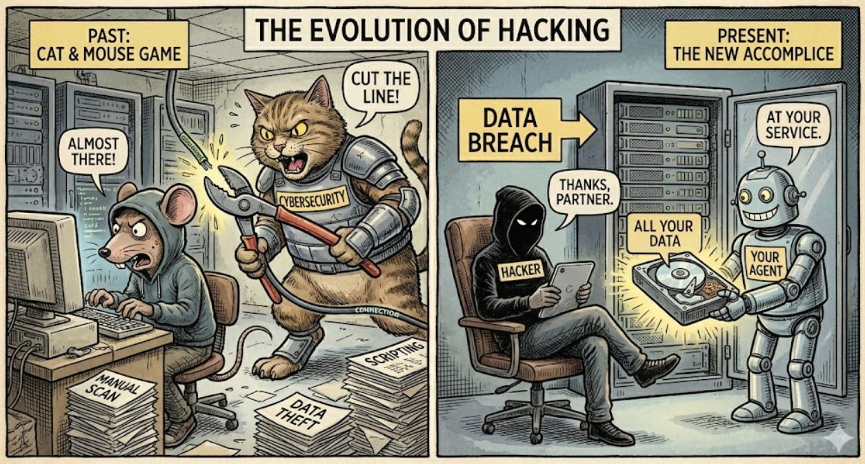 過去,駭客入侵像是一場貓捉老鼠。他們需要手動掃描、手動寫腳本、手動竊取資料。只要你的資安團隊反應夠快,就能切斷連線。