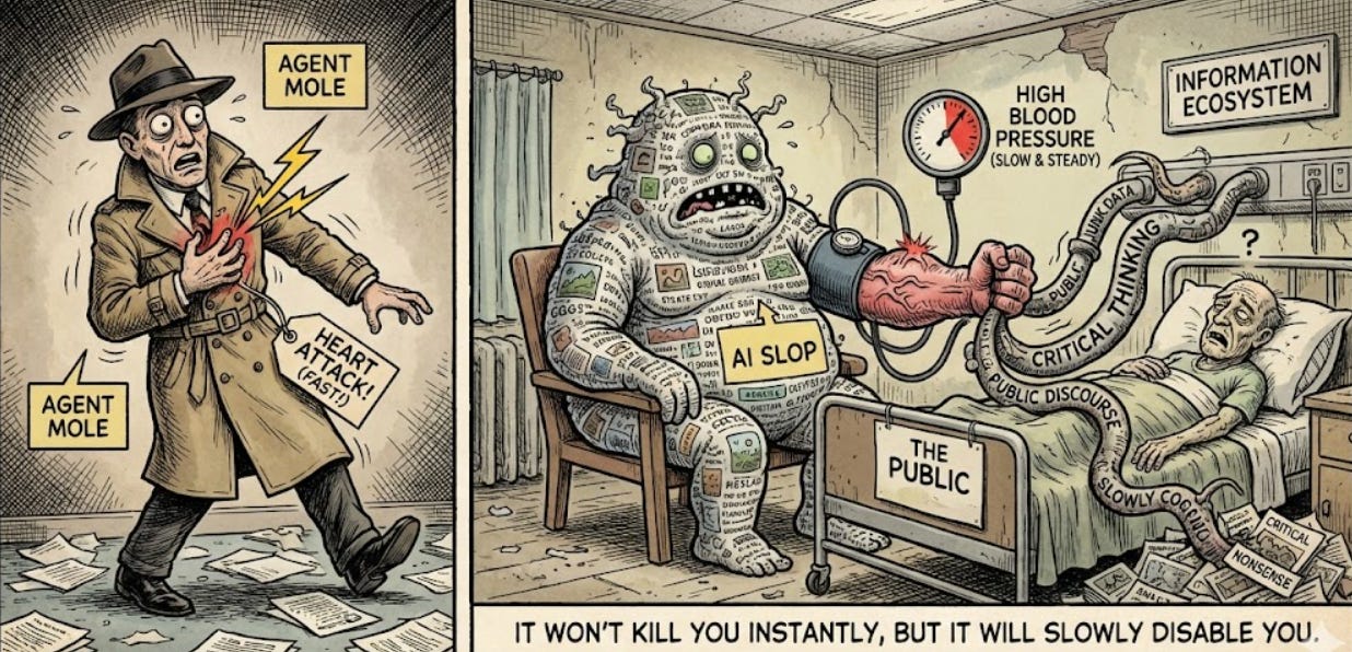 如果 Agent 內鬼是「心臟病發」,那 AI Slop(低品質 AI 生成內容)就是「高血壓」-它不會馬上殺死你,但會讓你慢慢失能。