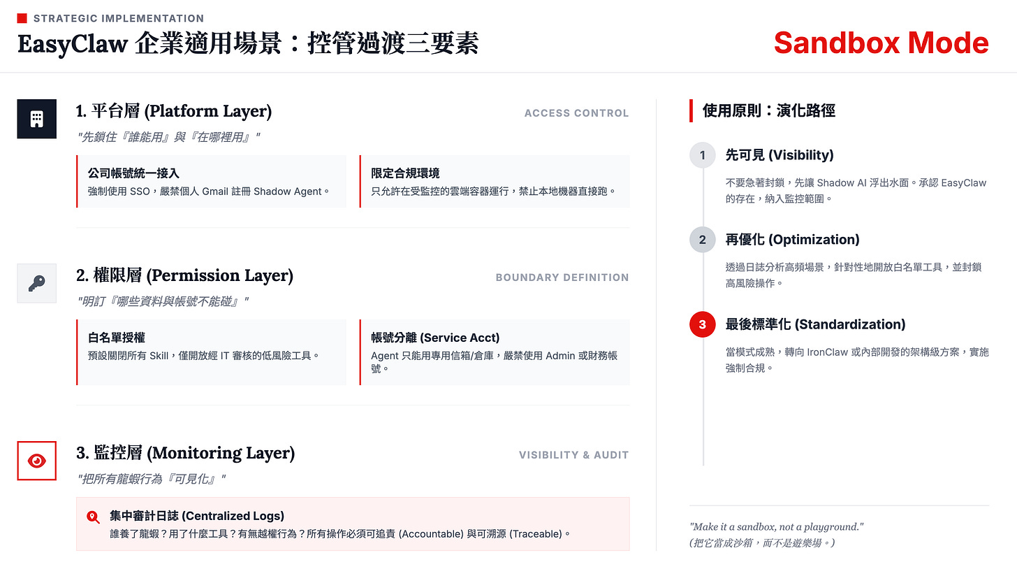 如果你要讓 EasyClaw 成為「控管過渡」,我會建議你用這套框架來對團隊說清楚: