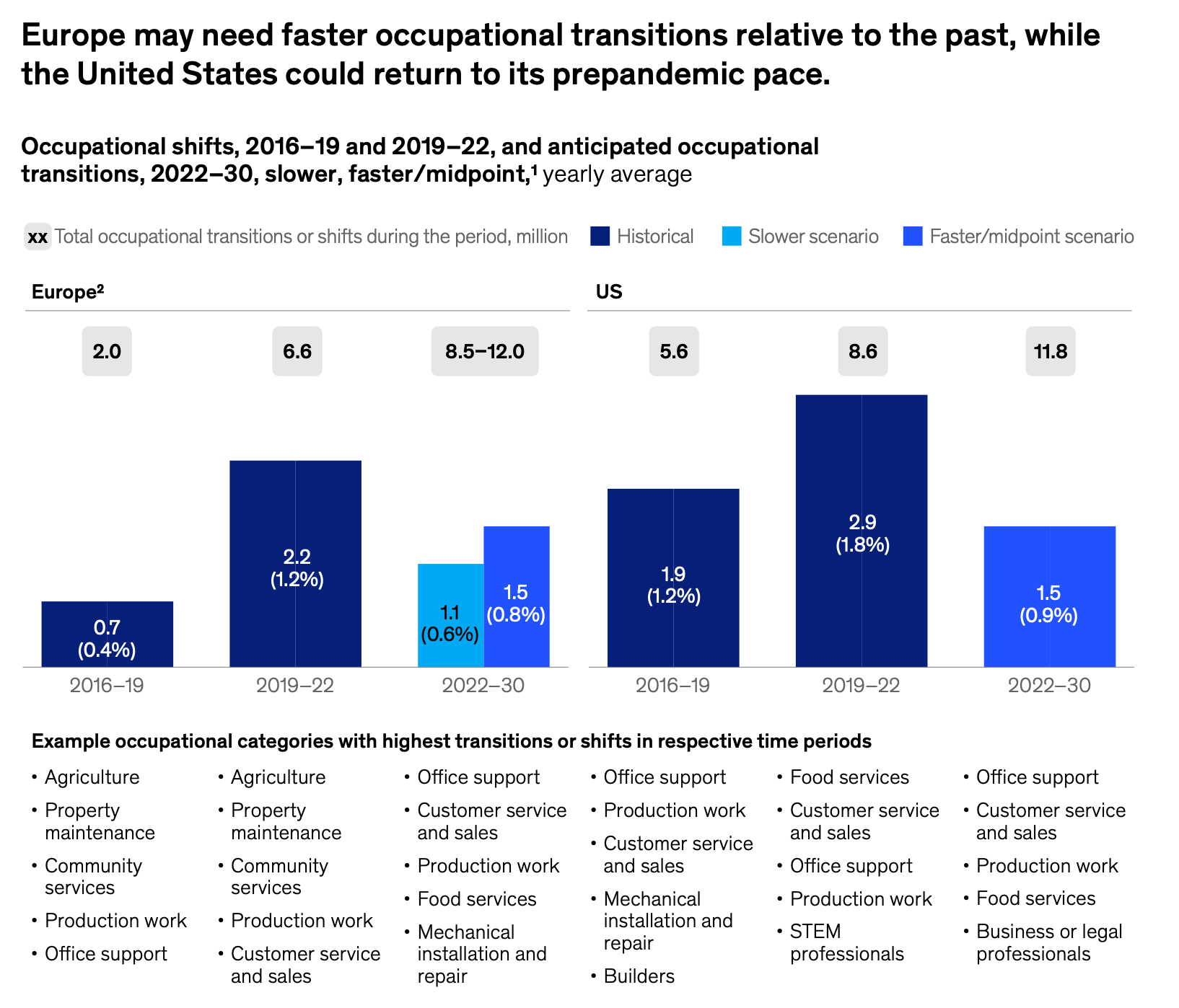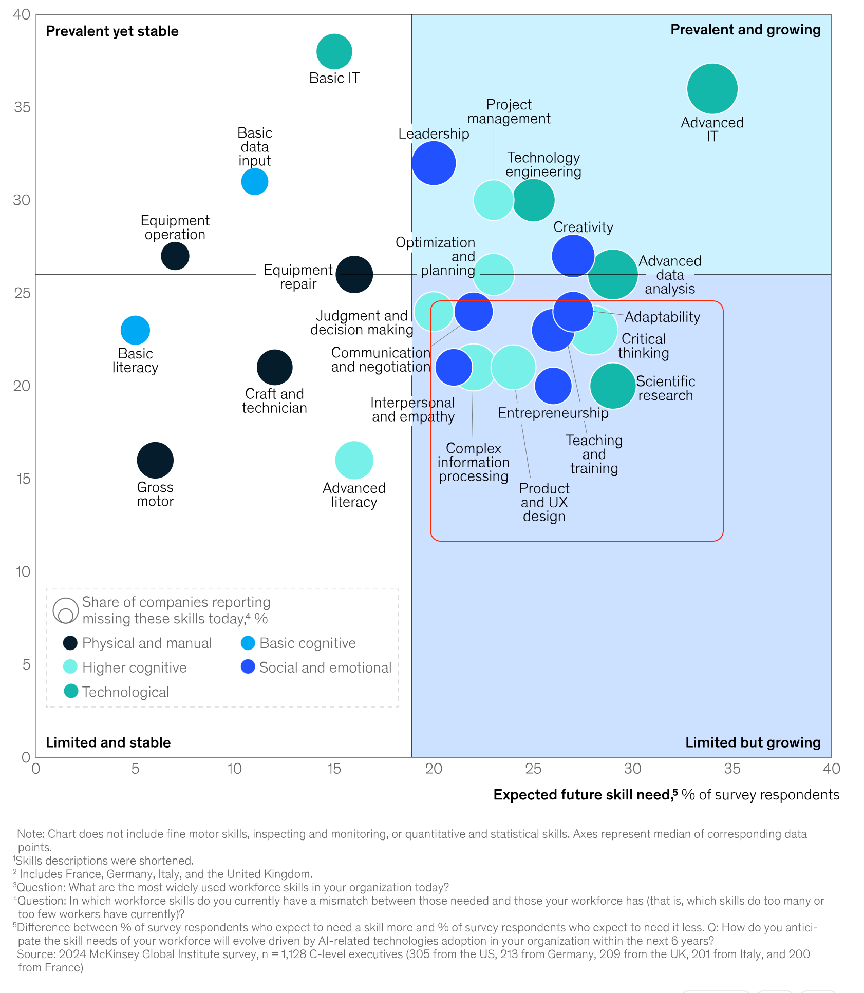 麥肯錫報告指出,生成式AI將使歐美高達30%的工作時間被自動化,因此未來極度渴求「技術」和「社交情感」技能。這聽起來就像又一張「學習清單」,告訴你只要照著學,就能在未來存活。