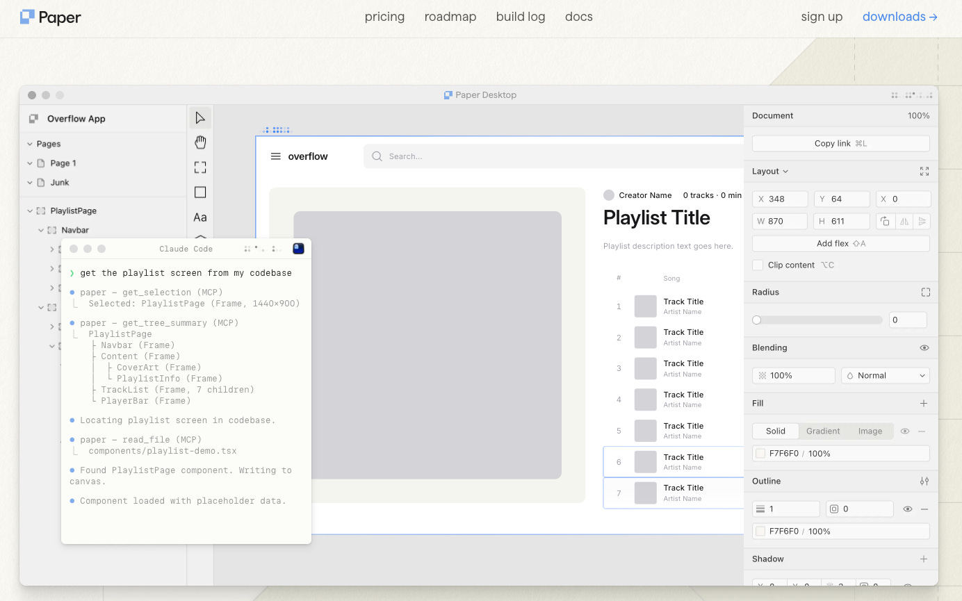 包括 Paper 自己的畫布、瀏覽器裡的頁面,甚至是像 Figma 那樣的介面。 AI 不再只是吐出一段 code,而是用 MCP APIs 去建立 frame、拉出元件、改 CSS、截圖,再把結果回傳給你。