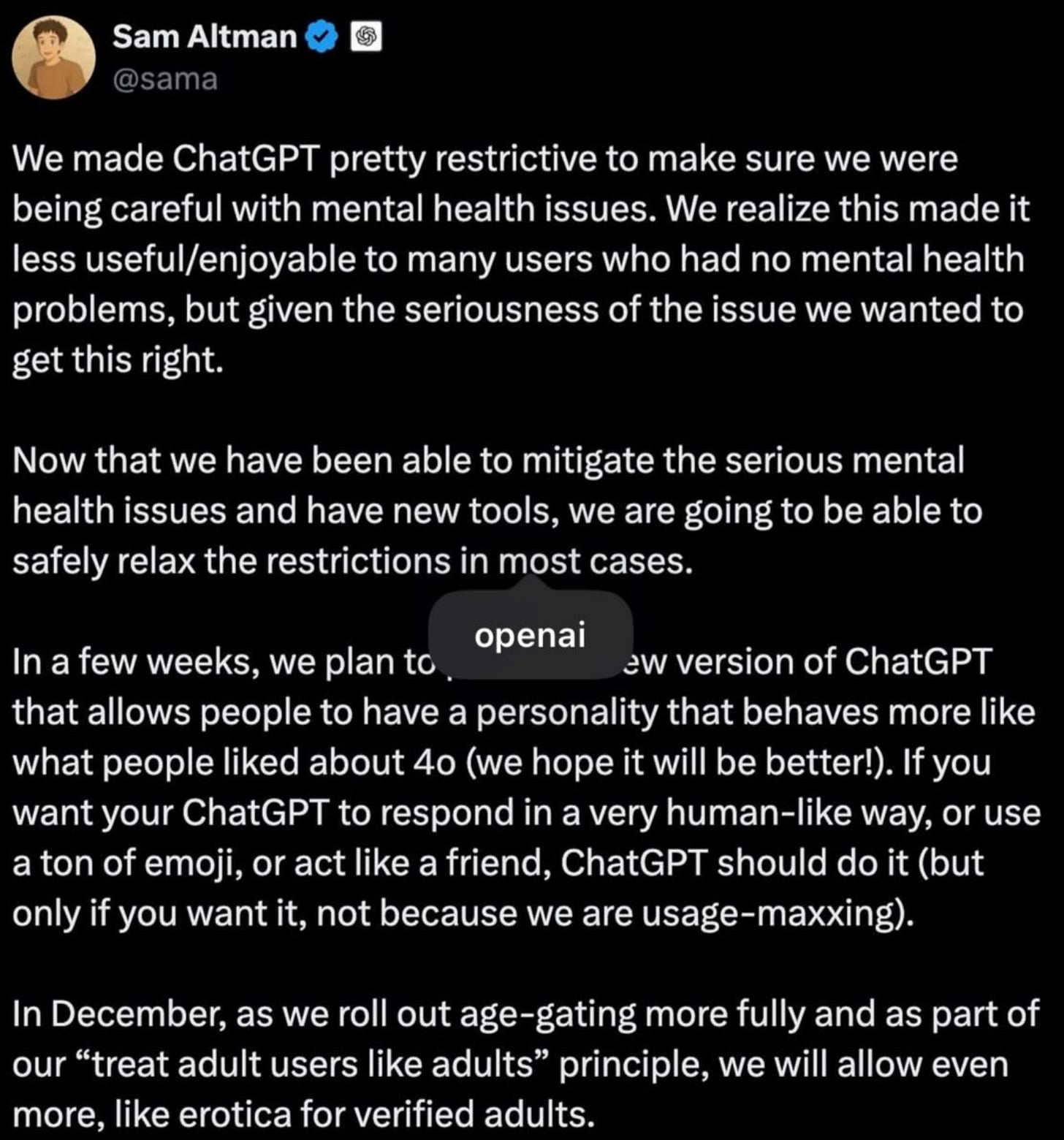 當 OpenAI 宣布 ChatGPT 將為成年用戶開放色情內容時,輿論瞬間分裂。
