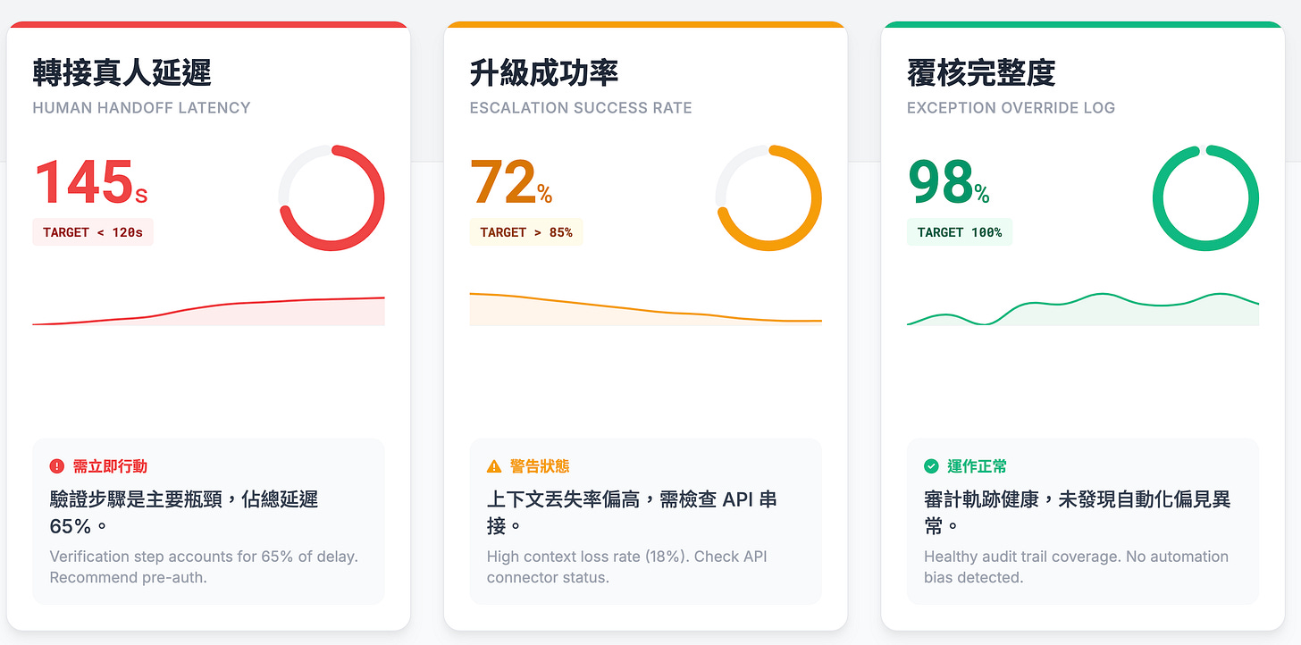 先別談宏大框架,先看三個可觀察指標:真人接手延遲、升級成功率、例外覆寫紀錄。這三個數字決定你是在做體驗,還是在做風險外包。
