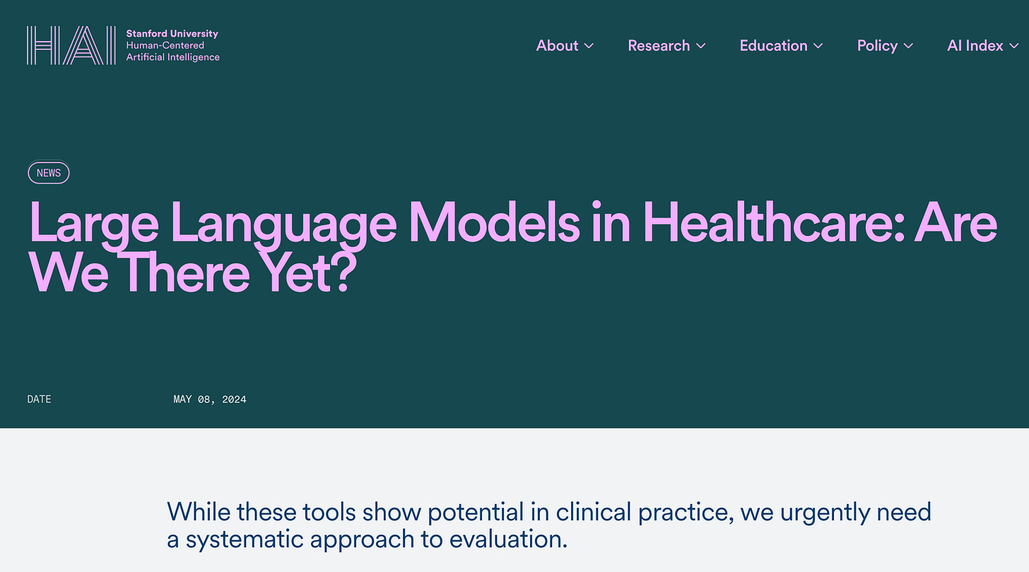 雖然 66% 的美國醫師開始使用 AI,但 Stanford HAI (2025) 對現有文獻的 meta-level 評估給了我們一記當頭棒喝:只有 5% 的評估是基於「真實患者資料」。大多數 AI 表現良好的測試,都是像 USMLE 這種「考試」。但在真實世界裡,病人不會照著課本生病。