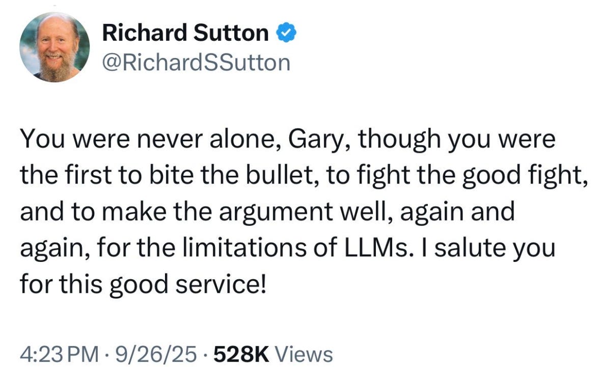 When the LLM crowd has lost Sutton – and when Sutton sounds exactly like me – it’s game over.