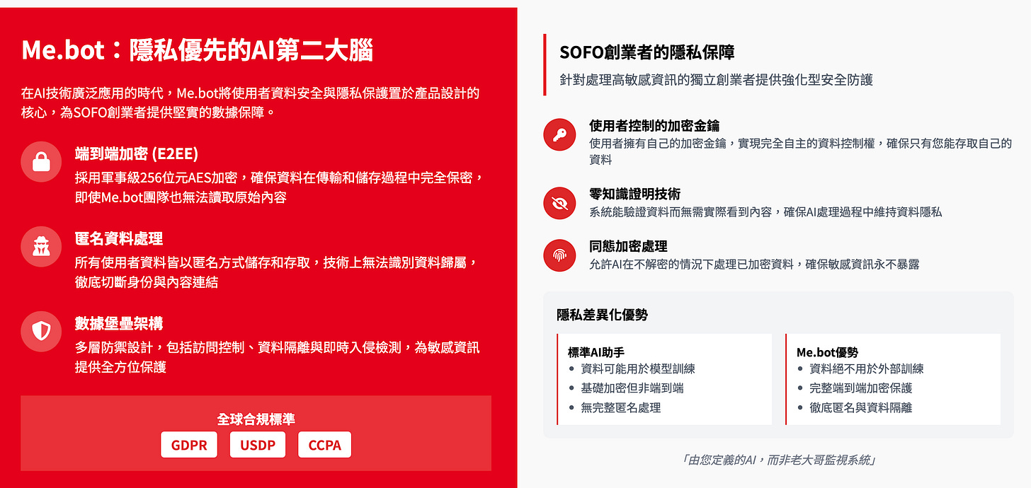 Tanka.ai以其「AI 共同創辦人」的定位,Tanka.ai、Me.bot 都強調安全合規,讓SOFO從第一天就能建立信任。Tanka.ai更提供0美元孵化/學生計畫,讓SOFO可以零成本啟動AI新創。