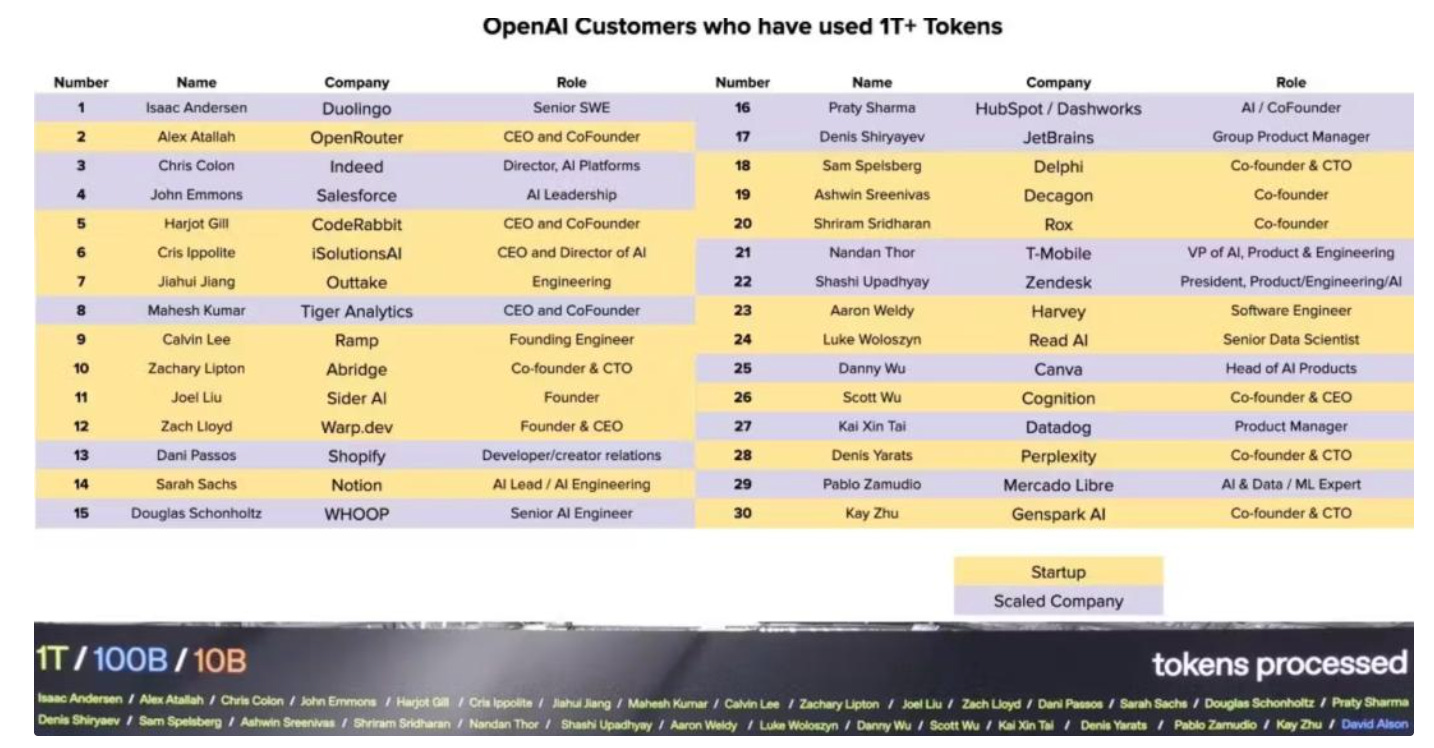 最近,一份曝光的 OpenAI「神秘客戶名單」在科技圈掀起波瀾。這份據稱是 OpenAI 最大的 30 個客戶名單,每家公司每年的 Token 消耗量都超過一萬億。