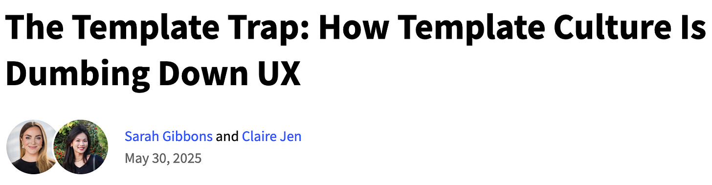 "The template trap is dumbing down our industry. When practitioners reach for premade solutions rather than thinking through problems, they're not just being lazy — they're actively degrading the intellectual foundation of our field." — NN/g